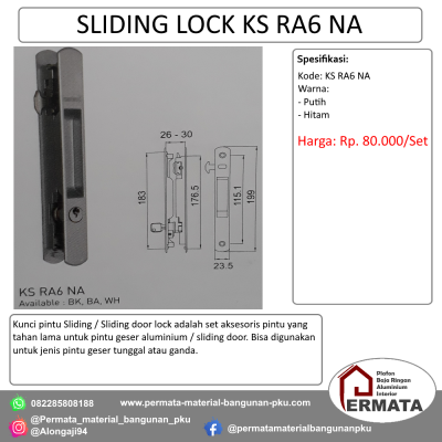 Kunci pintu Sliding / Sliding door lock adalah set aksesoris pintu yang tahan lama untuk pintu geser aluminium / sliding door. Bisa digunakan untuk jenis pintu geser tunggal atau ganda.